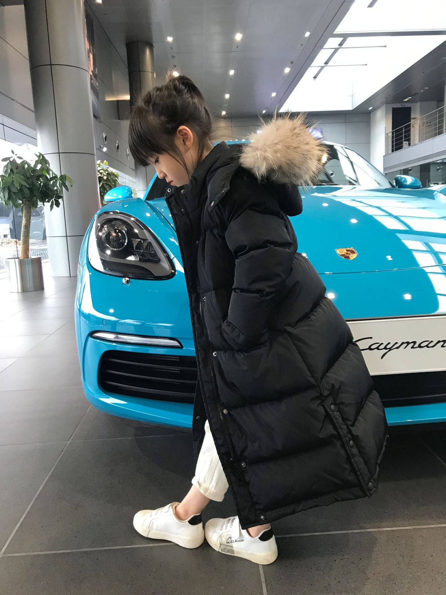 2022 Wool Collar Lined Children's Down Jacket Slim-fit Korean Style Boys' And Girls' Long Thickened Jacket Ins Trendy