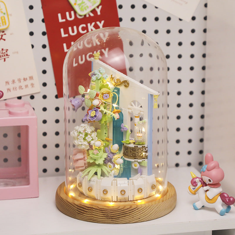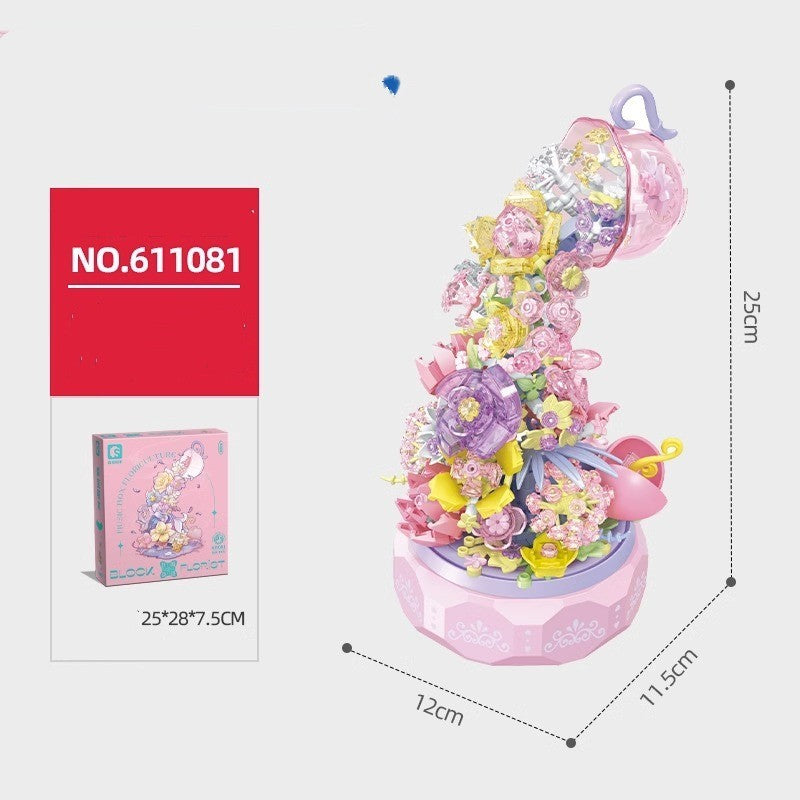 Flower Bouquet Assembly Building Block Lighting Music Box Desktop Decoration
