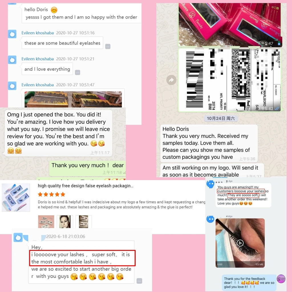 Cils de luxe faits à la main en bande de faux vison avec emballage de cils personnalisé et impression de logo