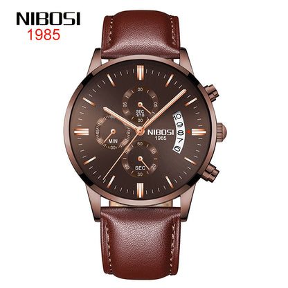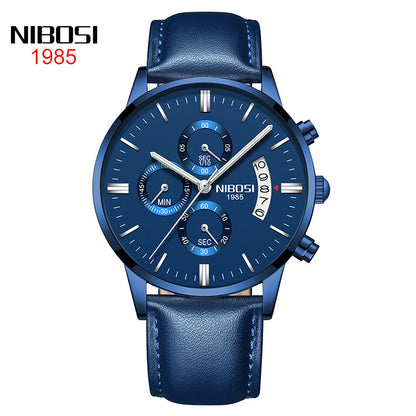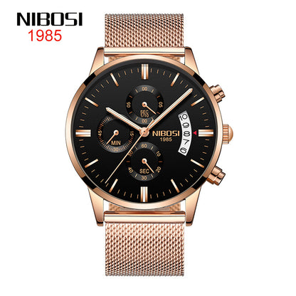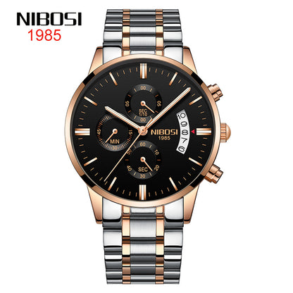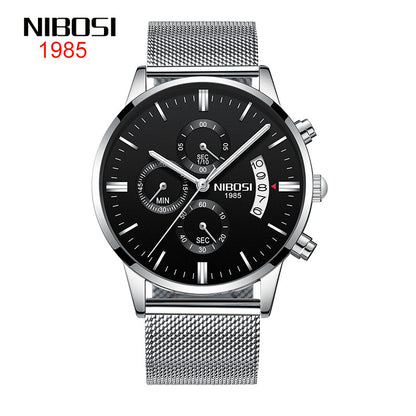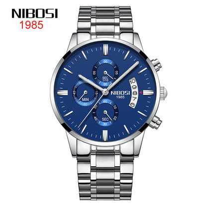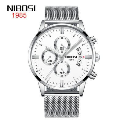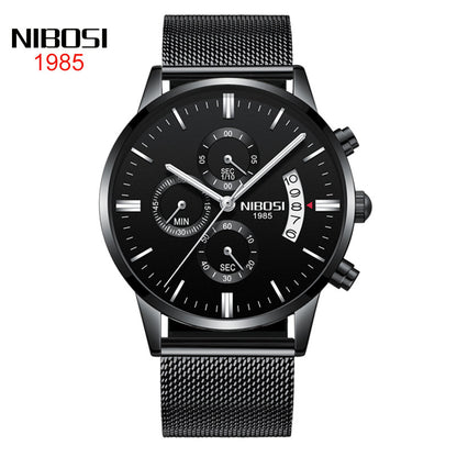 NIBOSI – montre à Quartz pour hommes, bracelet en acier massif, avec revêtement étanche, verre lumineux, trois yeux, 6 broches, papillon Snap