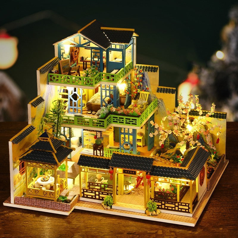 DIY Cottage Fuchun Mountain Residence Handgemaakt houten gebouw Groot villahuis