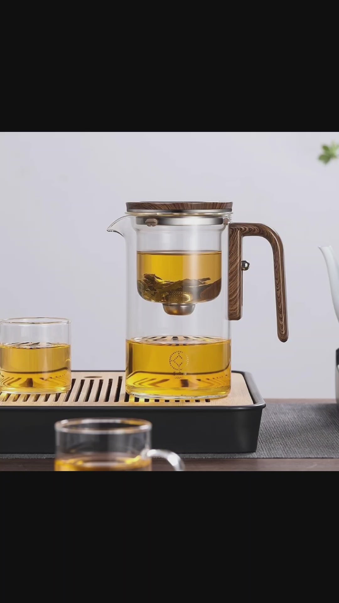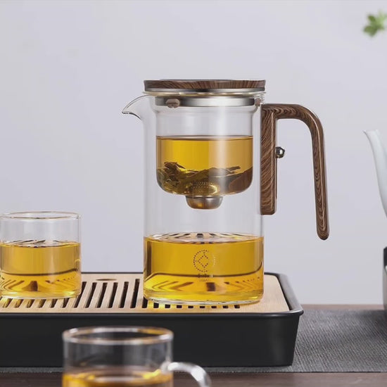 One Click Magnetic Teapot Separation Filtration Glass Tea Pot Wood Handle Tea Water Separation Inner Container Teapot