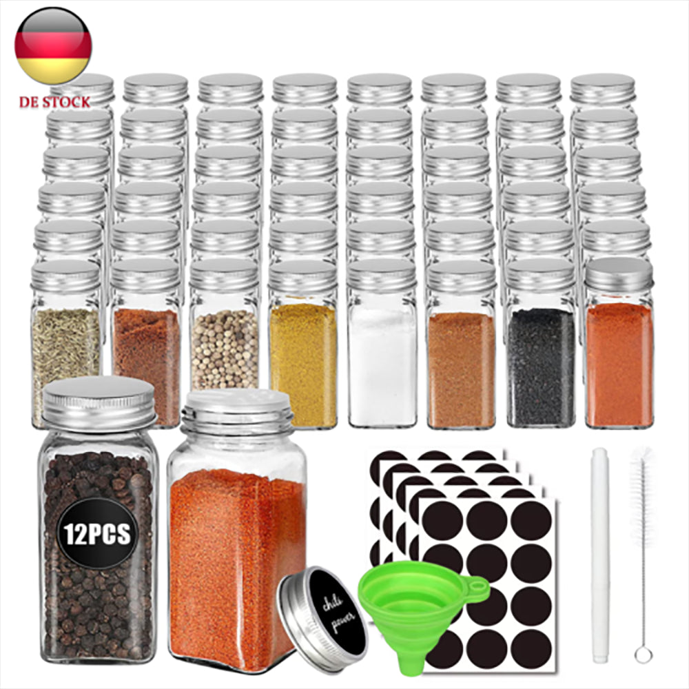 12er Set Vorratsgläser mit Edelstahl Deckel Gewürzgläser Aufbewahrung Glas Dosen